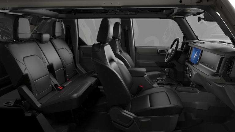 Designed for both adventure and comfort, the Bronco's interior boasts a host of premium amenities. Enjoy the convenience of dual-zone electronic automatic temperature control, front row heated seats, and a premium sound system with SiriusXM and SYNC 4 connectivity. The Raptor-style running boards and washout-capable rubberized flooring make it easy to keep your Bronco clean, no matter where your adventures take you.