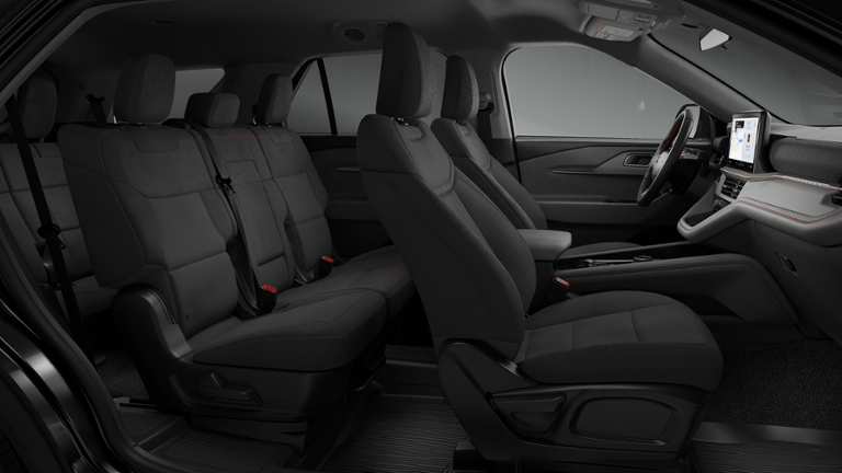 The spacious interior of the Explorer Active features a 2nd Row Split Bench with E-Z Entry, providing easy access to the 3rd-row seating. Indulge in the comfort of heated front seats and the convenience of the 13.2 LCD touchscreen, which integrates your favorite apps and features.