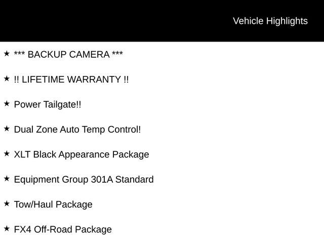 With a city fuel efficiency of 18 MPG and a highway rating of 23 MPG, this F-150 delivers impressive performance and efficiency. The FX4 Off-Road Package and the XLT Black Appearance Package elevate the truck's rugged good looks and off-road capabilities, making it the perfect companion for your next adventure.