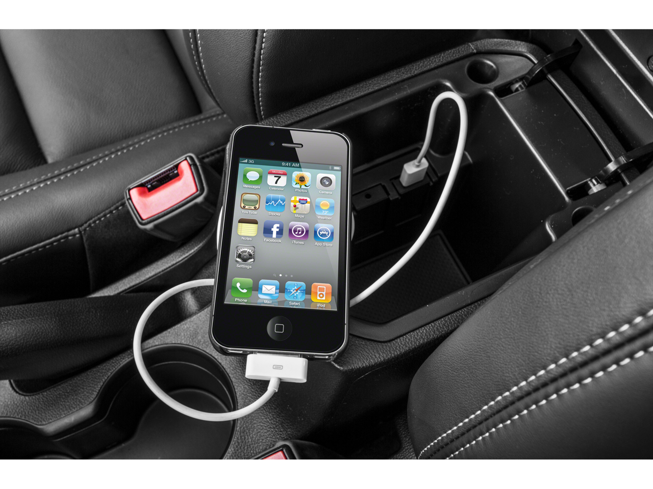 - Audio system feature, auxiliary input jack, located in center console