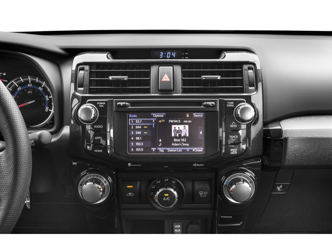 - Radio: Entune Audio Plus -inc: Entune Multimedia bundle (6.1-inch high resolution touch-screen display, AM/FM CD player, MP3/WMA playback capability, auxiliary audio jack, USB 2.0 port w/iPod connectivity and control, advanced voice recognition, hands-free phone capability, phone book access and music streaming via Bluetooth® wireless technology), SiriusXM All Access Radio w/3-month complimentary trial, HD Radio, HD traffic and weather in major metro areas, and integrated backup camera display, Entune App Suite includes Bing, Facebook Places, iHeartRadio, MovieTickets.com, OpenTable, Pandora and Yelp; real-time info including traffic, weather, fuel prices, sports and stocks Access to Entune services is complimentary for three years. See toyota.com/entune for details.