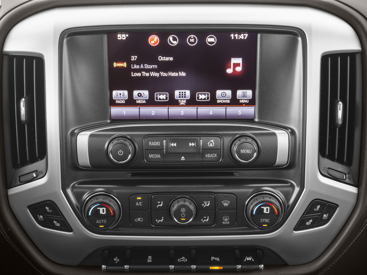 - Audio system, 8" diagonal Color Touch Screen with GMC Infotainment System, AM/FM/SiriusXM, HD Radio with USB ports, auxiliary jack, Bluetooth streaming audio for music and most phones, Pandora Internet radio and voice-activated technology for radio and phone (Upgradeable to (IO6) 8" Diagonal Color Touch audio system with Navigation and GMC Infotainment System.)