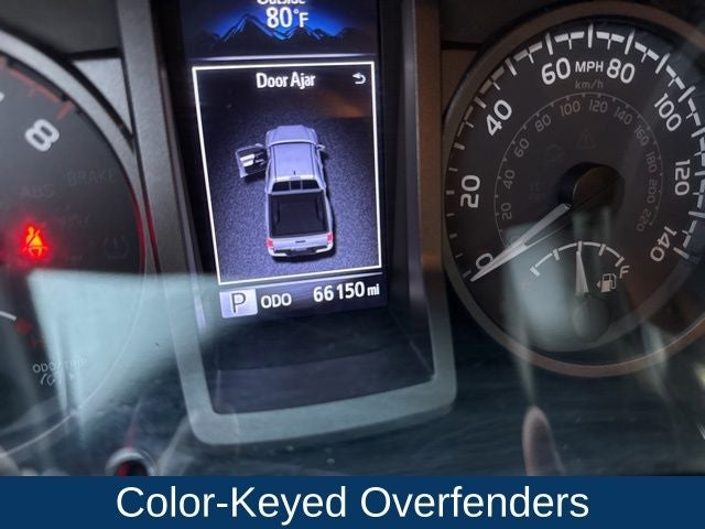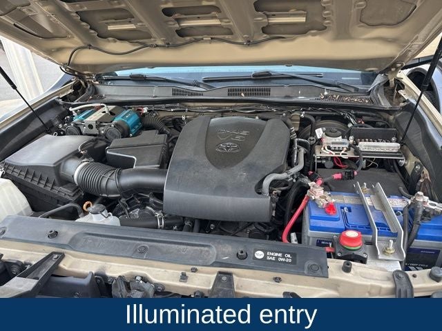 The TRD Sport package takes this Tacoma to the next level, with wide-body fender flares, color-keyed accents, and powerful LED daytime running lights. The 17-inch alloy wheels and power sliding rear window with privacy glass add a touch of style and practicality.