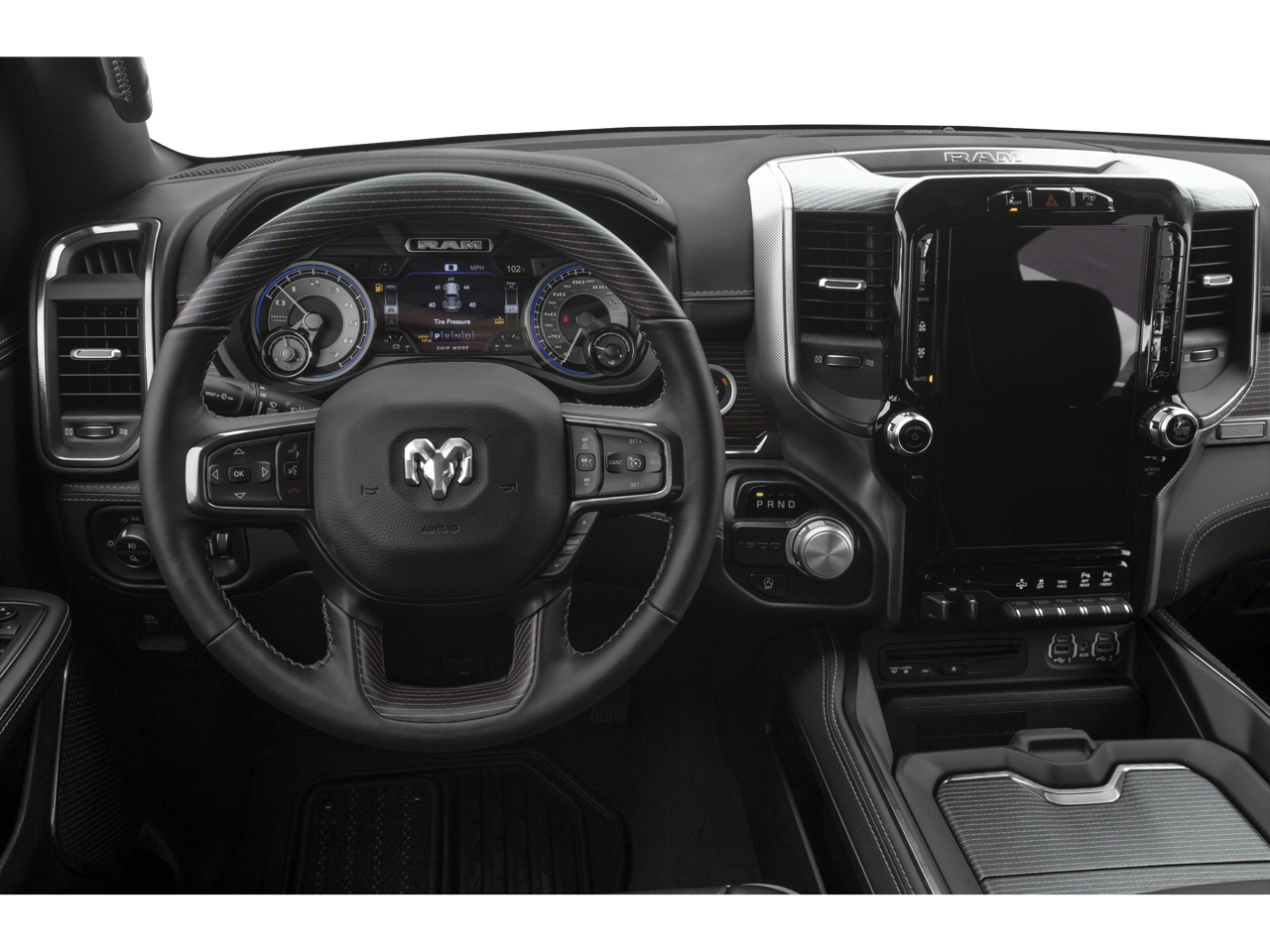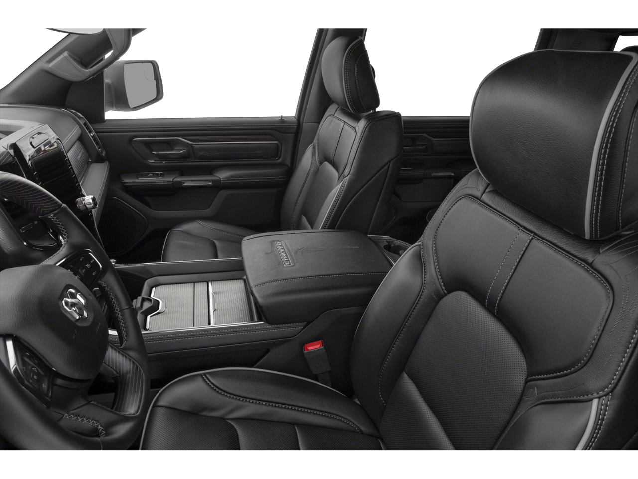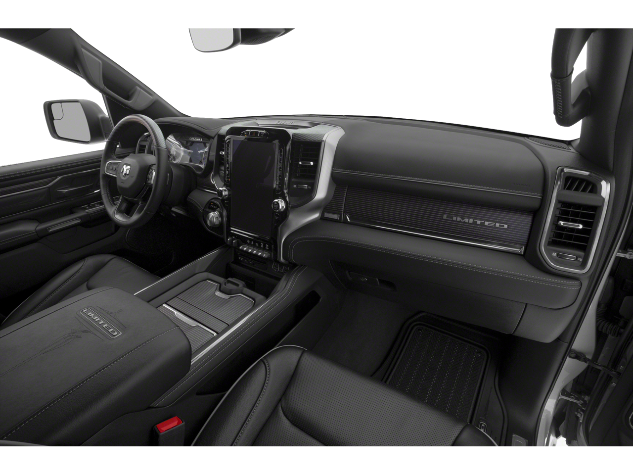 The spacious and well-appointed interior of the Ram 1500 Limited provides a level of comfort and refinement rarely seen in a full-size pickup. Sink into the premium leather-trimmed seats, which offer both heating and ventilation for year-round comfort. The Uconnect 12 infotainment system with navigation keeps you connected and entertained, while the harman/kardon premium audio system delivers an immersive listening experience.