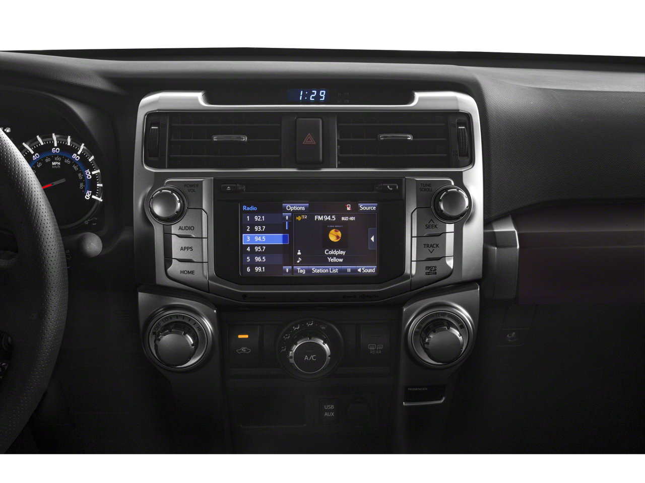 RADIO: ENTUNE PREMIUM AUDIO WITH NAVIGATION Entune Multimedia bundle (6.1 high resolution touch-screen w/split screen display, AM/FM CD player w/MP3/WMA playback capability, 8 speakers, auxiliary audio jack, USB 2.0 port w/iPod connectivity and control, advanced voice recognition, hands-free phone capability, phone book access and music streaming via Bluetooth® wireless technology), Siri Eyes Free, Entune AppSuite, HD Radio, HD Radio predictive traffic and Doppler weather overlay, AM/FM cache radio, SiriusXM satellite radio w/3-month complimentary all access trial, Gracenote album cover art and integrated backup camera display w/projected path, Entune App Suite includes Destination Search, iHeartRadio, MovieTickets.com, OpenTable, Pandora, Facebook Places, Yelp and Slacker Radio; real-time, RUNNING BOARDS.