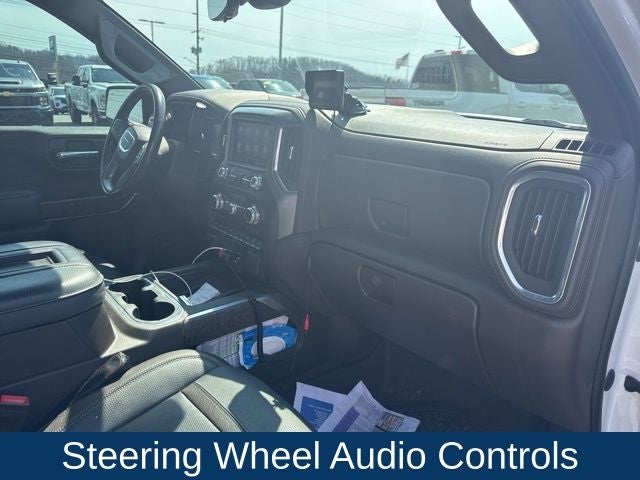 Adorned in a striking White Frost Tricoat exterior, this Sierra 1500 Denali commands attention on the road. The chrome wheel-to-wheel assist steps, signature Denali grille, and 22-inch multi-dimensional polished aluminum wheels exude a sense of refined sophistication.