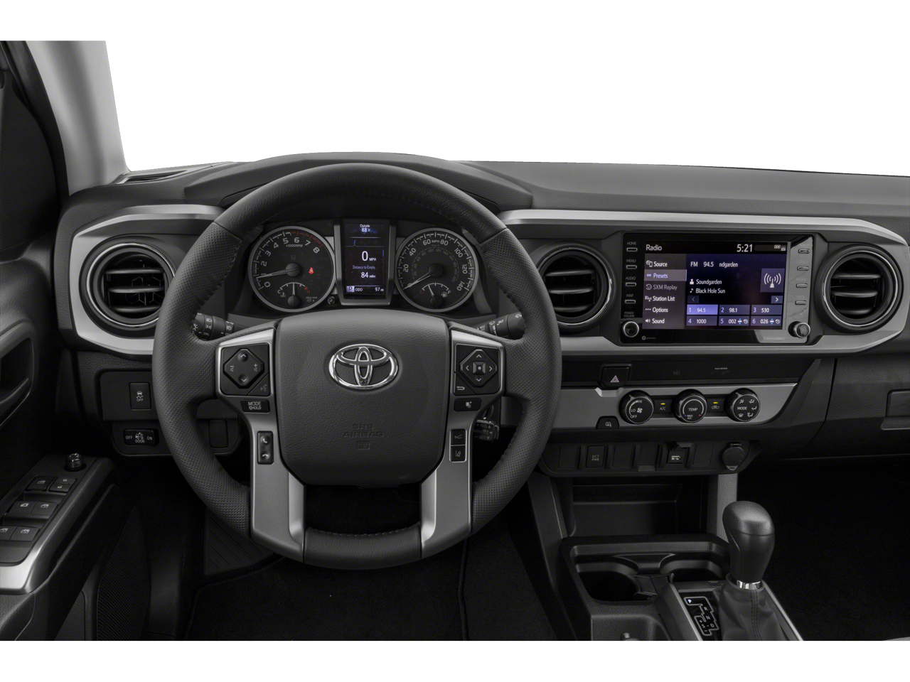 Elevate your driving experience with the SR5 Package, which includes Front Dual Zone A/C, Remote Keyless Entry, Traction Control, ABS Brakes, Low Tire Pressure Warning, and Electronic Stability Control. The Tacoma also features Daytime Running Lamps, Front Fog Lamps, Active Cruise Control, and a Bar Gray Ring Chrome Front Grille for a bold, confident appearance.