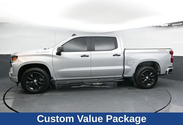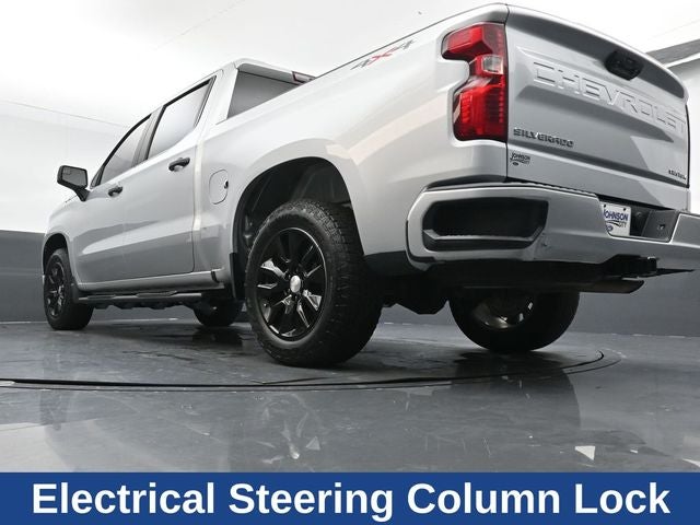 2022 Silver Ice Metallic Chevrolet 4D Crew Cab Silverado 1500 Custom 4WD 8-Speed Automatic 2.7L Turbo