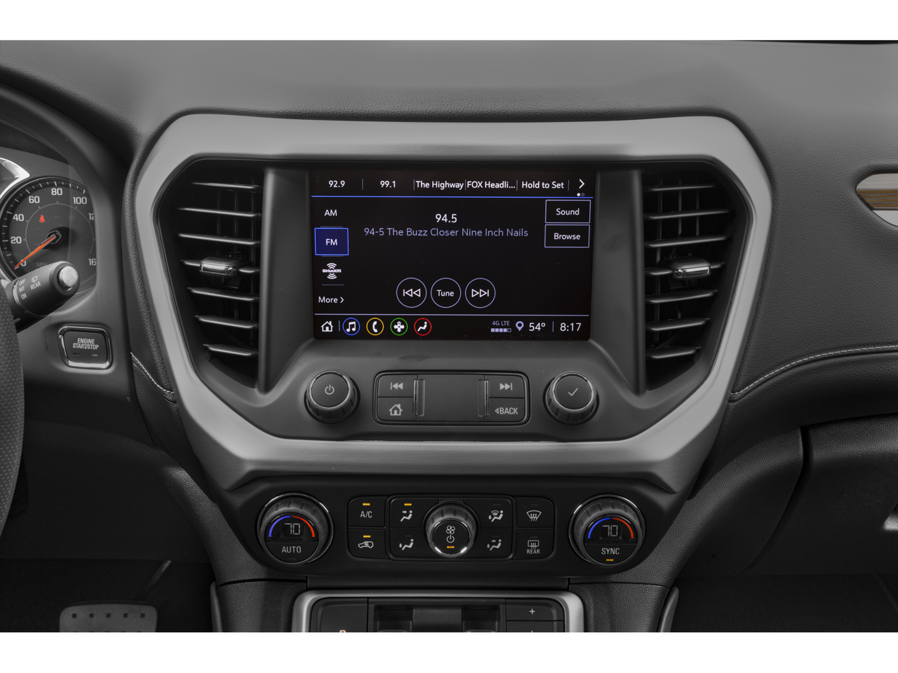 - Audio system, 8" diagonal GMC Infotainment System with Navigation includes multi-touch display, AM/FM/SiriusXM stereo, Bluetooth® streaming audio for music and most phones, Android Auto and Apple CarPlay capability for compatible phones, advanced voice recognition, in-vehicle apps, personalized profiles for infotainment and vehicle settings