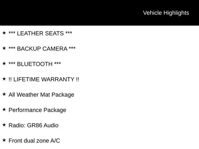 - Vehicle Name: Toyota GR86